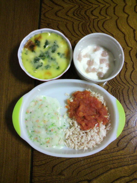 次に『ささみのトマトソースがけ』ささみを細かくちぎるのに時間がかかりました(>_<)