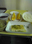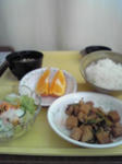 ごはん 吉野汁(豚汁みたいな感じであんかけ汁 ) めかじきの角煮 サラダ オレンジ